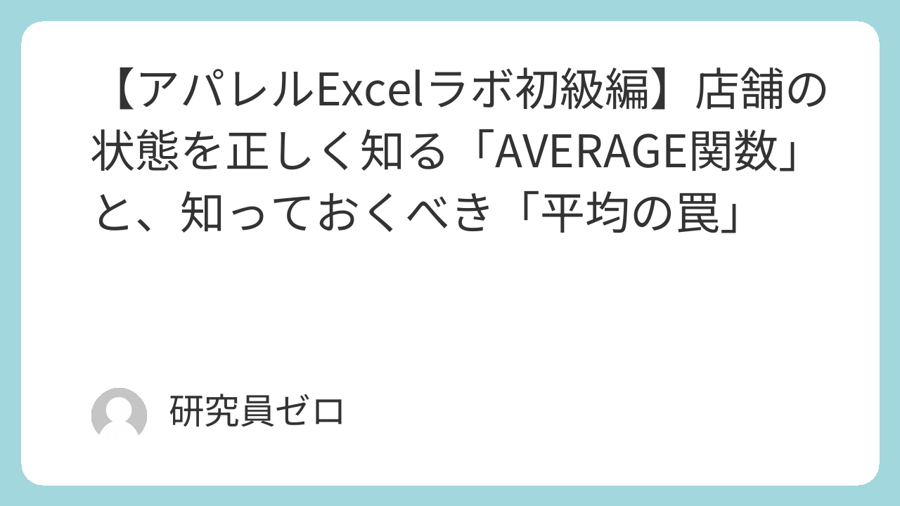 第4回のテーマは、店舗の健康状態を測るバロメーター「平均(AVERAGE関数)」です。 しかし、今回の研究は少しだけ踏み込みます。実は、Excel初心者が最も陥りやすい「平均の罠」があるからです。