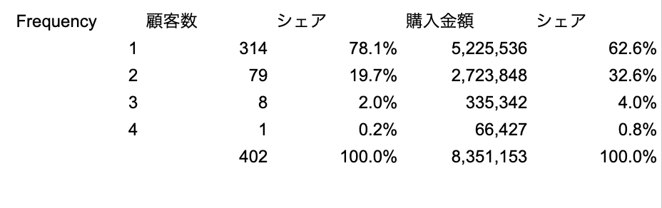 これが「パレートの法則」です。少数のコアなファンが、お店の土台を支えてくれていることが一目でわかります。